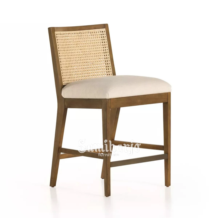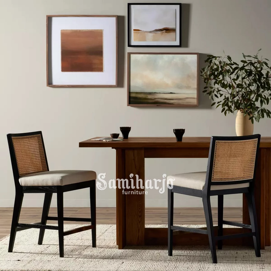 Bar Stool Ravia tidak hanya berfungsi sebagai kursi, tetapi juga sebagai elemen desain yang memperkaya tampilan ruang. Dengan detail rotan yang khas dan konstruksi kayu yang kokoh, kursi ini mampu menciptakan suasana yang lebih hangat dan elegan.
