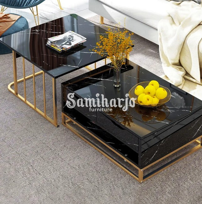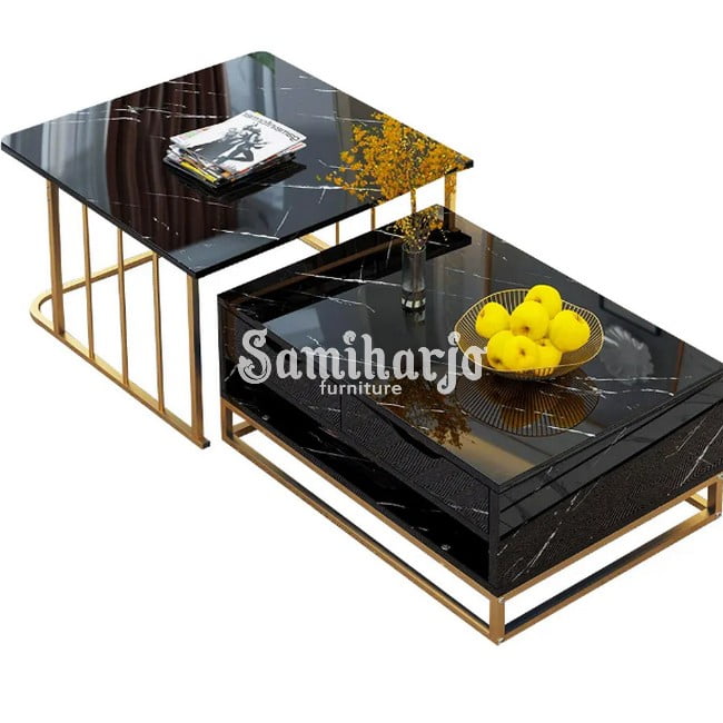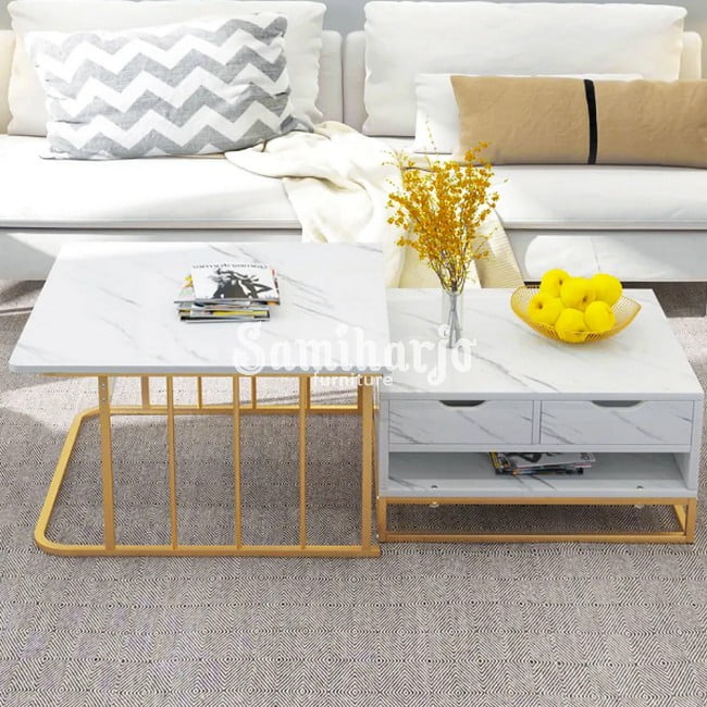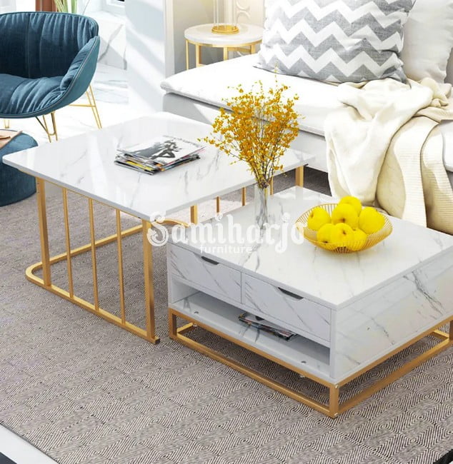 Coffee Table Kekinian | Meja Tamu Stainless Laci Penyimpanan