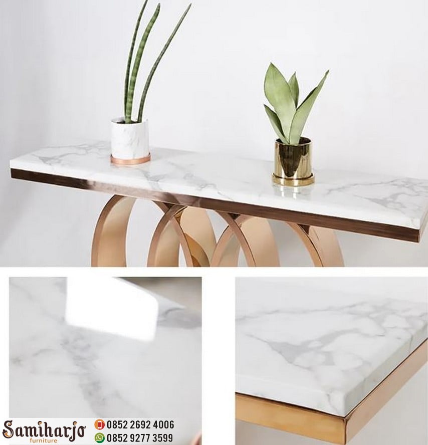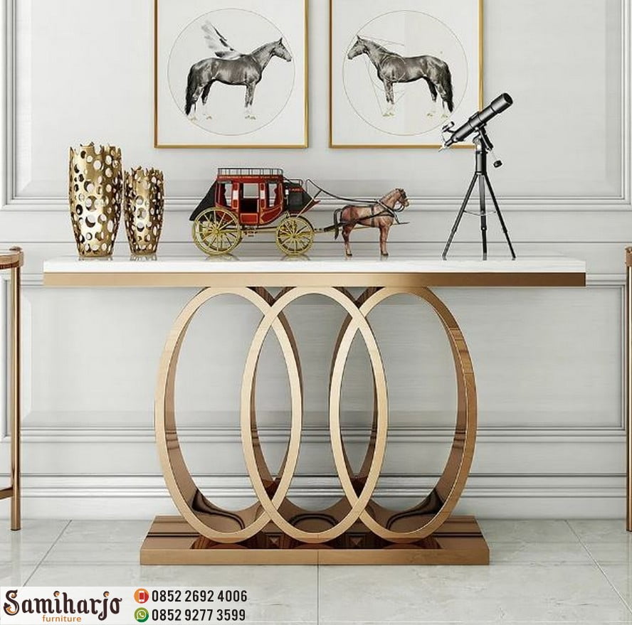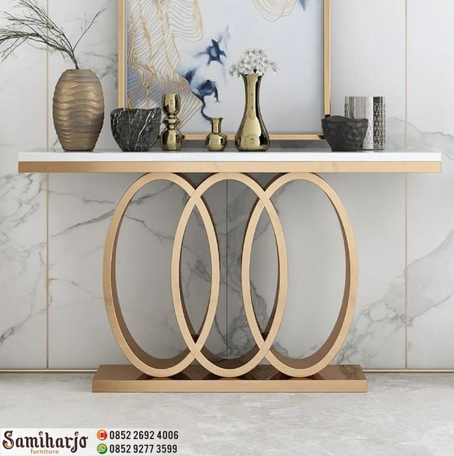Foyer Marmer Carrara Console Table Foyer 3 Lingkaran Emas Top