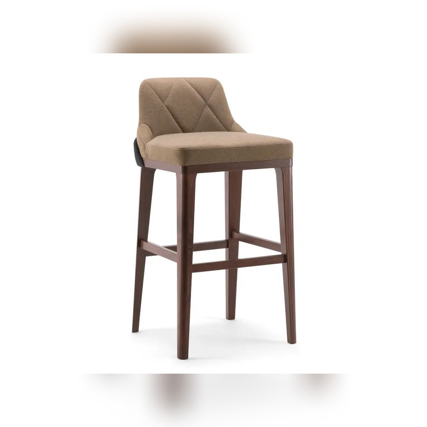 Kursi bar ini menghadirkan nuansa elegan dan nyaman berkat sandaran empuk dengan detail jahitan pola berlian yang menawan. Rangka kayu solid memberikan kekokohan sekaligus sentuhan hangat alami, sementara dudukan berlapis kain lembut menghadirkan kenyamanan ekstra untuk penggunaan jangka panjang. Desainnya cocok untuk bar rumah, dapur modern, atau lounge hotel berkelas.