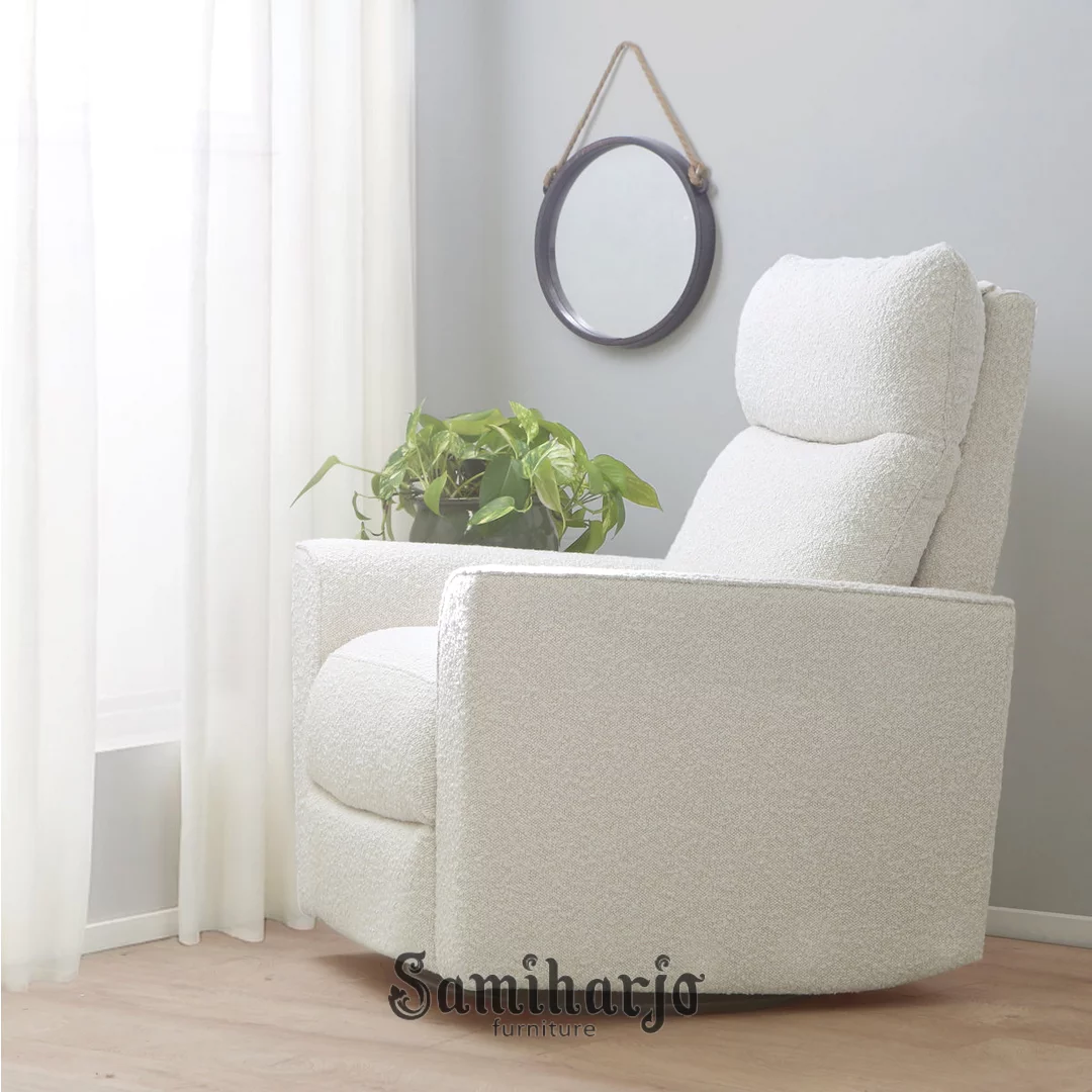 Kursi santai ini dirancang dengan pendekatan modern yang mengutamakan kenyamanan dan ketenangan visual. Bentuk bodinya membulat dengan proporsi seimbang, menciptakan kesan lembut sekaligus solid.