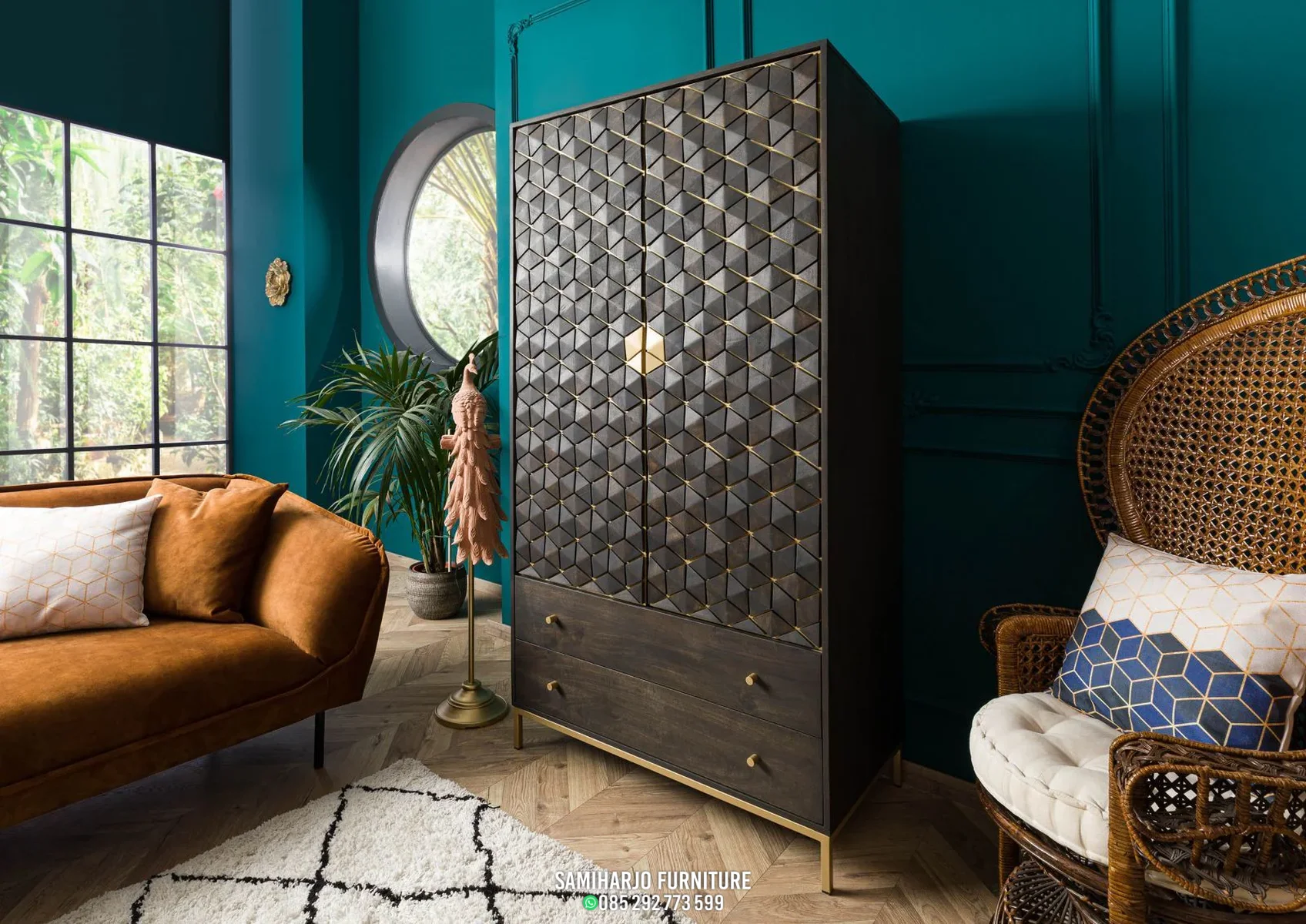 Lemari Kamar Geometrik ini dirancang untuk menghadirkan perpaduan sempurna antara fungsi penyimpanan maksimal dan estetika visual yang kuat. Dengan tampilan panel berpola geometris yang tersusun presisi, produk ini memberikan karakter unik yang langsung menarik perhatian. Tidak hanya sebagai tempat menyimpan pakaian, lemari ini juga berfungsi sebagai elemen dekoratif yang memperkuat nuansa ruang. Setiap detail dirancang dengan pertimbangan ergonomi serta kebutuhan penyimpanan modern, sehingga mampu menjawab kebutuhan hunian masa kini.