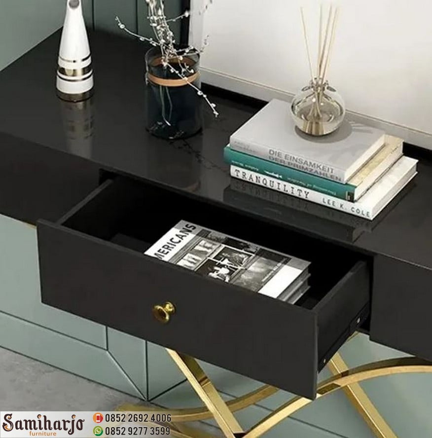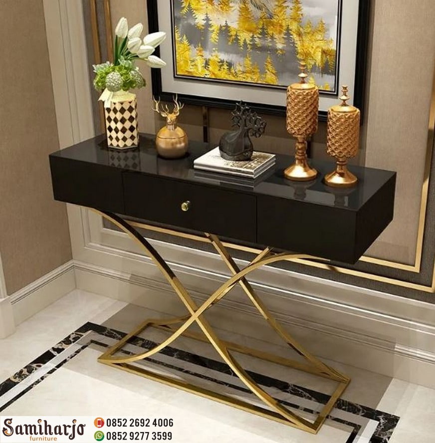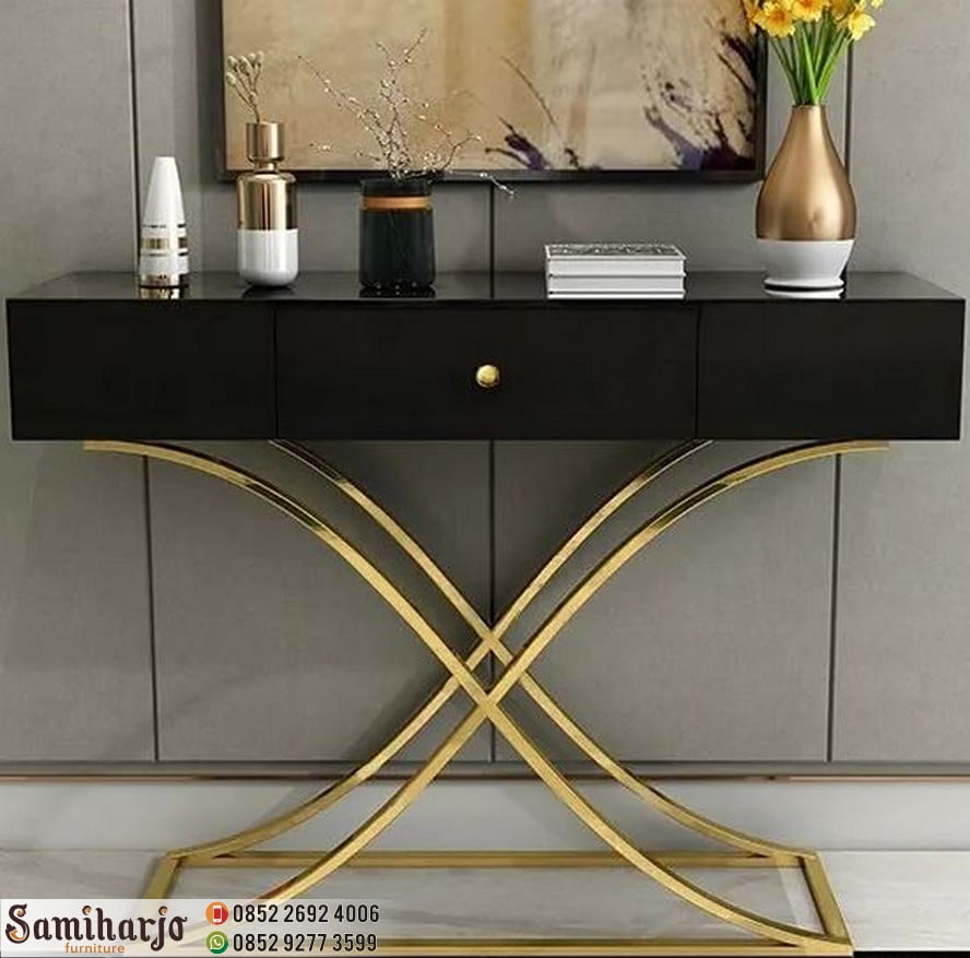 Meja Konsol Emas Laci Hitam Kontemporer Model X