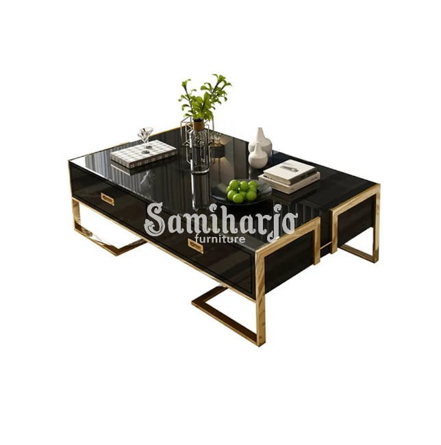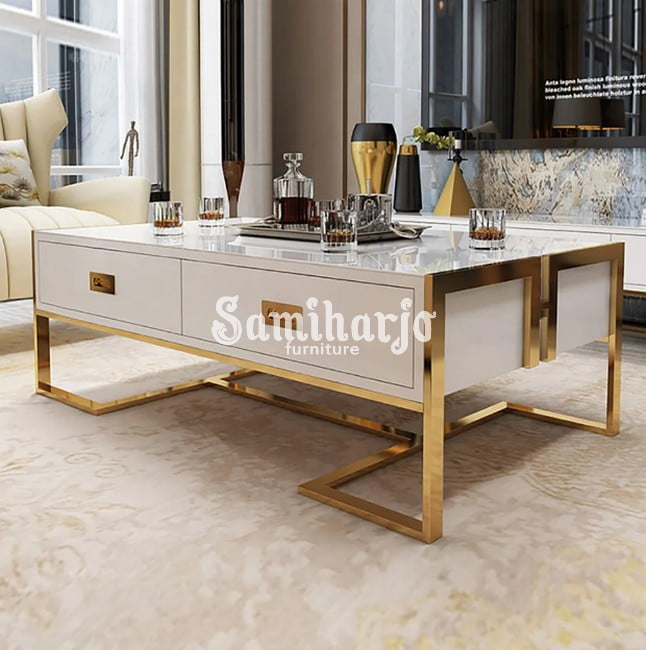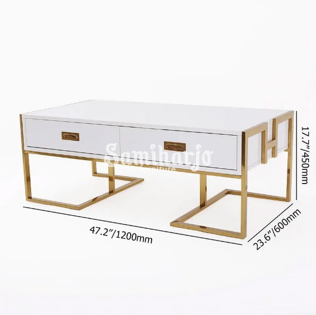 Meja Kopi Persegi Panjang Stainless Emas Kontemporer Laci