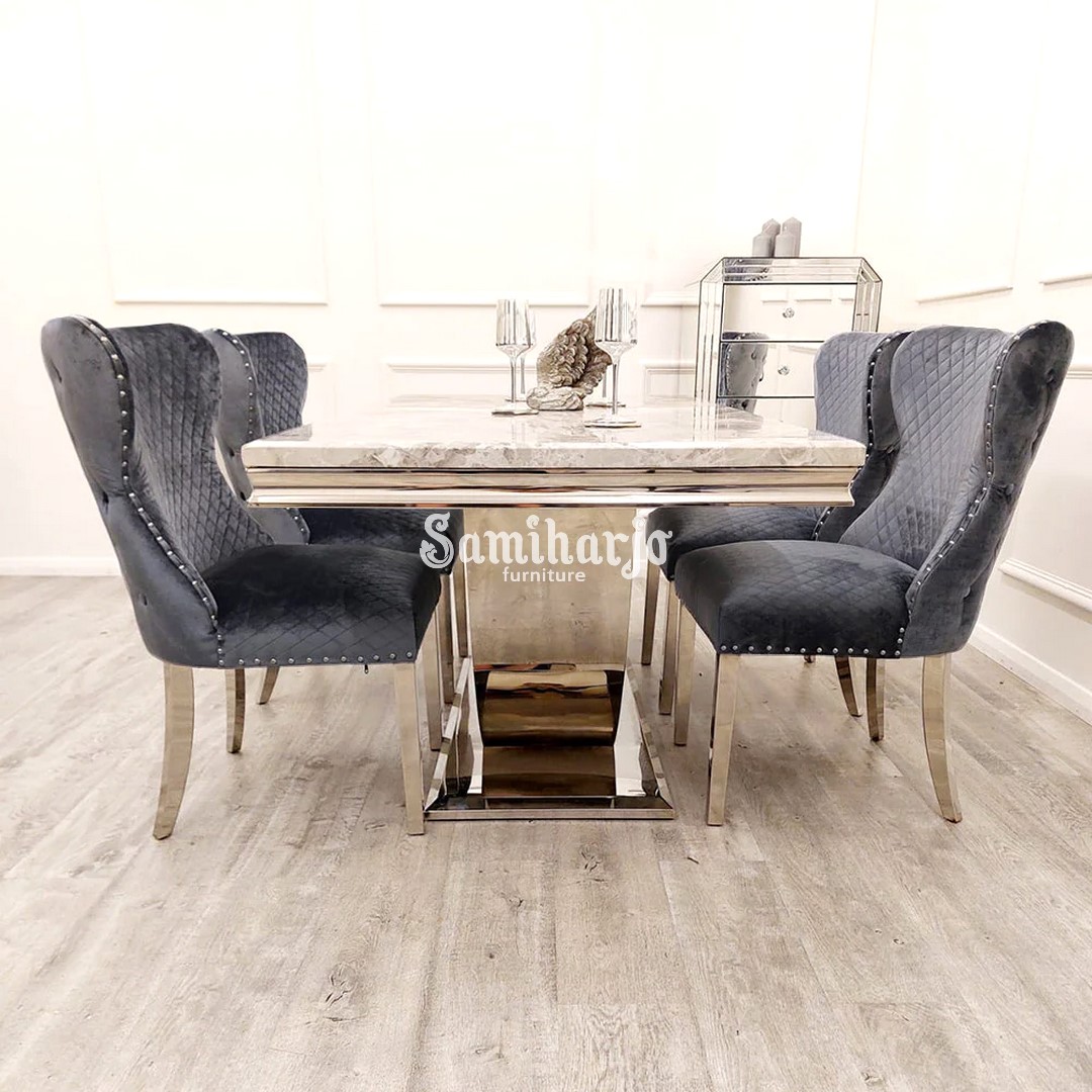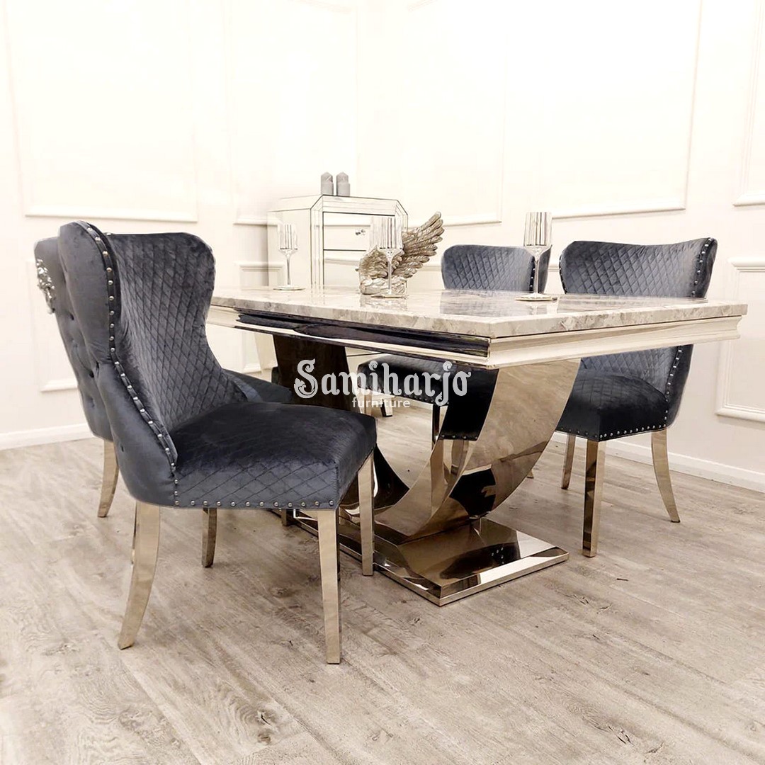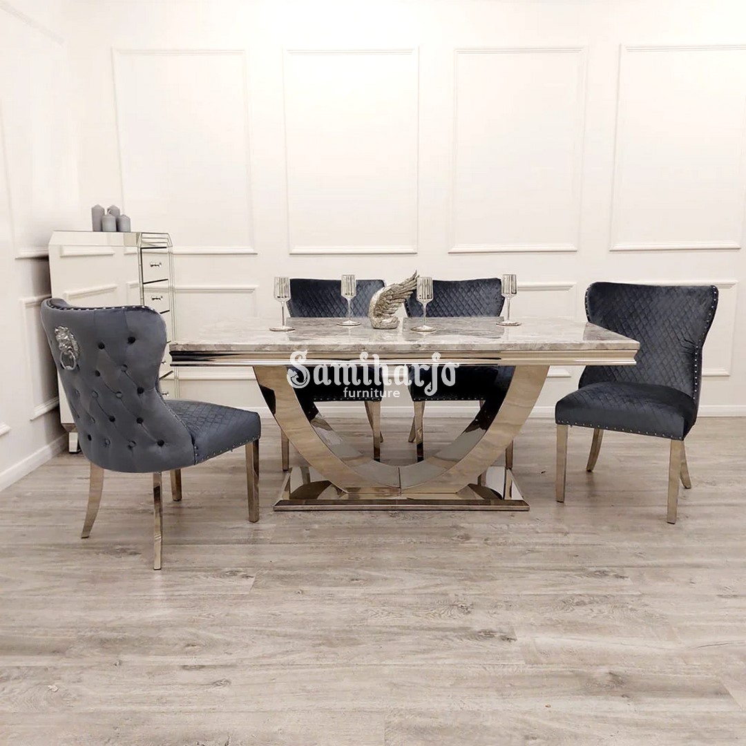 Meja Makan Lengkung Stainless Marmer Kursi Kursi Modern Klasik