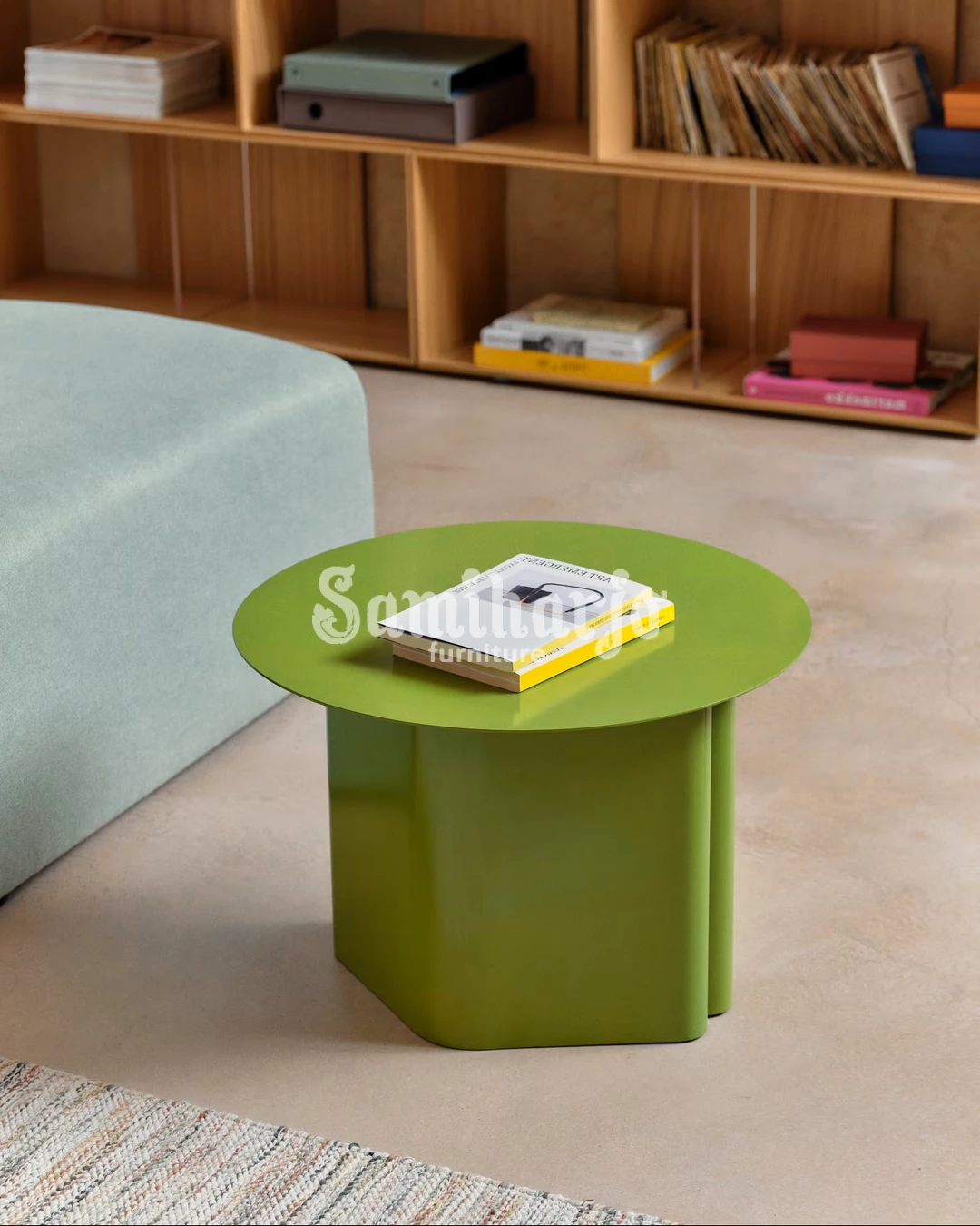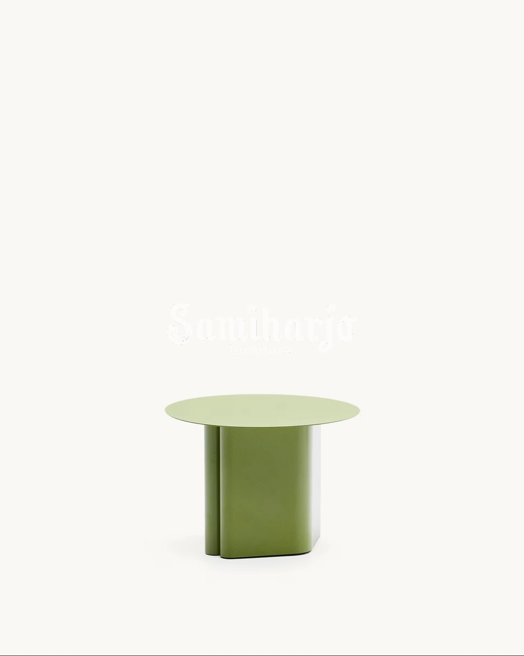 Keunggulan utama meja ini terletak pada bentuknya yang bersih namun ekspresif. Warna hijau memberi identitas visual yang kuat tanpa mengganggu harmoni ruang. Meja ini mudah dipadukan dengan sofa netral, kursi aksen, atau interior bernuansa kayu alami.