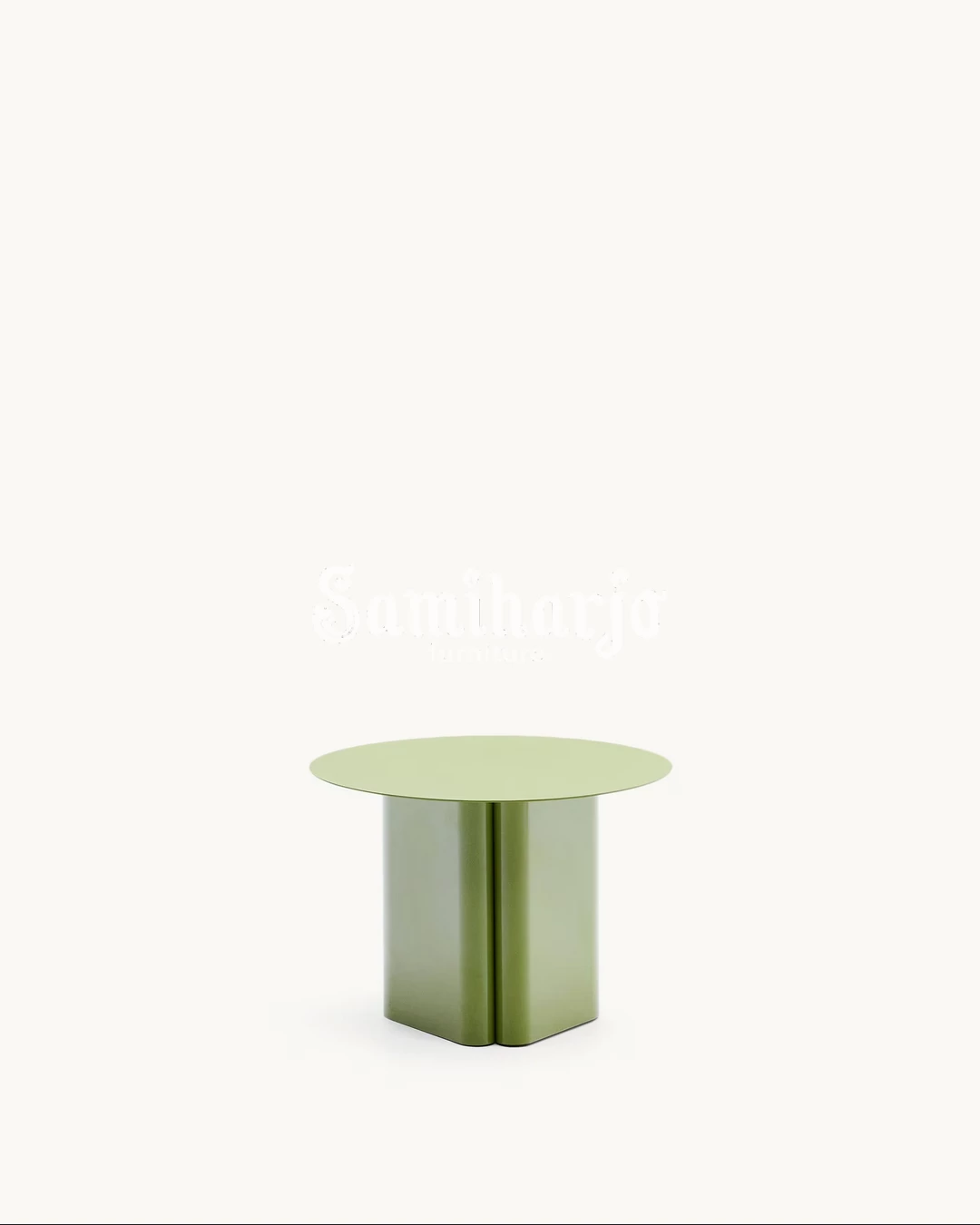 Warna hijau lembut memberikan nuansa kontemporer yang hidup tanpa terasa mencolok. Tone warna ini sering digunakan dalam desain interior modern Eropa karena mampu menciptakan kesan tenang, berkelas, dan artistik secara bersamaan. Meja ini tidak hanya berfungsi sebagai elemen pendukung, tetapi juga sebagai aksen visual yang memperkaya ruang.