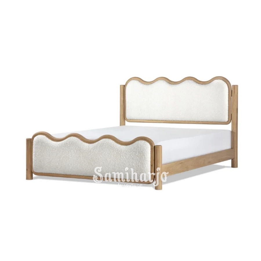 Produk unggulan kami, Rangka Bed Wave Serpentine, menonjolkan siluet gelombang pada bagian sandaran kepala dan kaki ranjang. Bentuk meliuk ini menghilangkan kesan kaku yang biasanya ada pada furnitur konvensional. Kain boucle yang digunakan memiliki karakteristik benang melingkar yang memberikan dimensi visual unik dan sensasi taktil yang sangat lembut saat bersentuhan dengan kulit. Sandaran yang empuk ini sangat ergonomis bagi Anda yang gemar membaca buku atau bekerja di atas tempat tidur sebelum beristirahat total.
