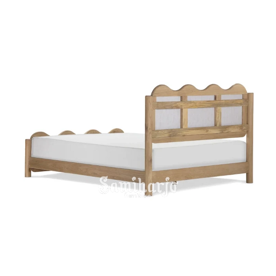 Rangka Bed Wave Serpentine hadir sebagai jawaban bagi Anda yang mendambakan suasana kamar tidur tenang namun tetap terlihat sangat modis dan artistik. Produk ini bukan sekadar tempat beristirahat, melainkan pernyataan gaya hidup yang menghargai harmoni antara material alam dan tekstur modern. Memasuki tahun 2026, tren furnitur dunia semakin bergeser ke arah bentuk-bentuk organik yang melengkung lembut guna menciptakan efek psikologis yang menenangkan. Samiharjo Furniture merancang dipan ini dengan ketelitian tinggi, memastikan setiap lengkungan pada headboard dan footboard simetris sempurna, memberikan visual yang memanjakan mata sekaligus kenyamanan maksimal saat Anda bersandar.