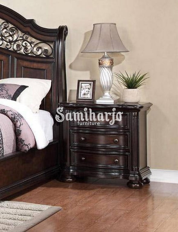 Set Kamar Tidur Maryland ALLISON Warna Coklat Tua menyediakan pusat elegan untuk kamar tidur yang indah Anda. Fitur utama dari koleksi ini adalah karya Ukiran klasik yang ditemukan di kepala tempat tidur, dan alas kaki tempat tidur serta bagian dari detail halus yang Anda temukan di nakas dan cermin.