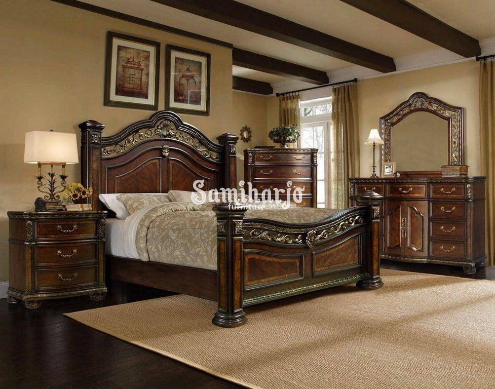 Set Kamar Tidur Pennsylvania King Poster Kayu Solid Klasik