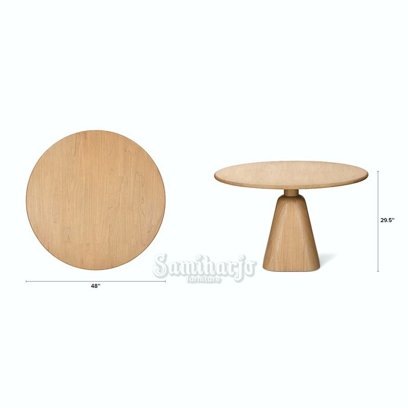 Set meja makan ini memiliki desain sederhana dengan bentuk bundar dan warna kayu terang yang memberi kesan bersih serta hangat. Kursinya bergaya modern dengan sandaran melengkung dan dudukan empuk yang nyaman digunakan setiap hari. Untuk pemesanan silahkan kunjungi website kami: samiharjofurniture.com.