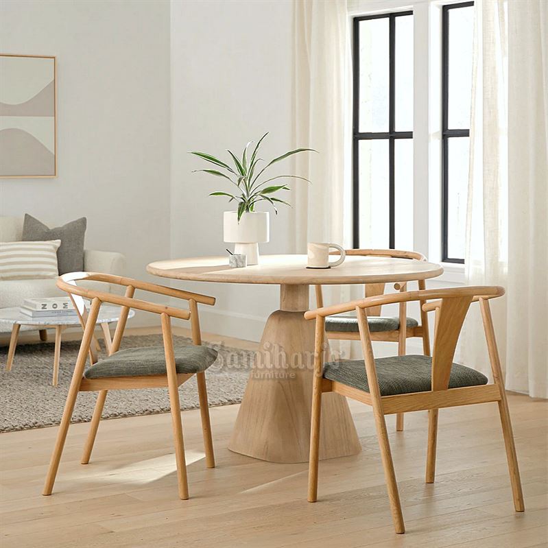 Set Meja Makan Bundar Minimalis Kayu Kursi Lengkung