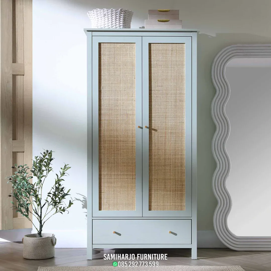Storage Pakaian Rotan Panel Full Tinggi Slim Kayu Solid Efisien Elegan