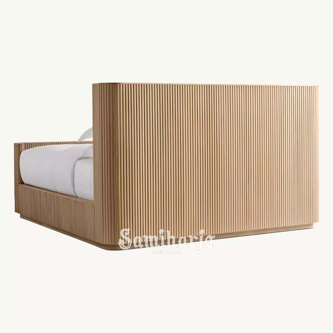 Tempat Tidur Fluted Panel Oak Kayu Jati Modern