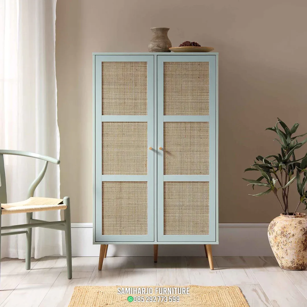 Wardrobe rotan simpel modern ini merupakan pilihan tepat bagi Anda yang menginginkan furnitur praktis dengan tampilan estetis. Desainnya yang ringan dan efisien membuatnya sangat fleksibel digunakan di berbagai jenis ruang.
